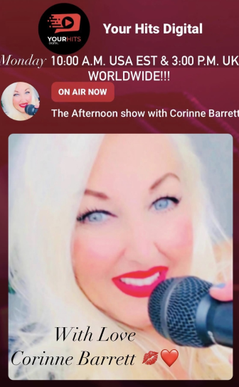 Corinne Barrett is also a radio presenter on Your Hits Digital with her own show “The Afternoon Show With Corinne Barrett” featured every Monday 10:00 a.m. EST & 3:00 p.m. UK as well as worldwide
